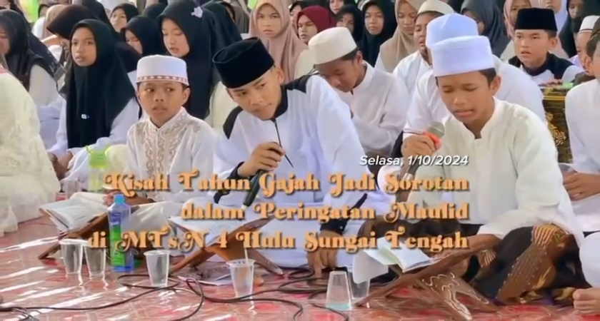 Hulu Sungai Tengah – MTsN 4 Hulu Sungai Tengah sukses menggelar peringatan Maulid Nabi Muhammad SAW 12 Rabiul Awal 1445 H pada Selasa, 1 Oktober 2024. Suasana khidmat menyelimuti MTsN 4 Hulu Sungai Tengah saat memperingati Maulid Nabi Muhammad SAW 12 Rabiul Awal 1445 H pada Selasa, 1 Oktober 2024. Acara yang digelar di ruang terbuka madrasah ini diikuti oleh seluruh pendidik dan tenaga kependidikan, serta seluruh peserta didik.