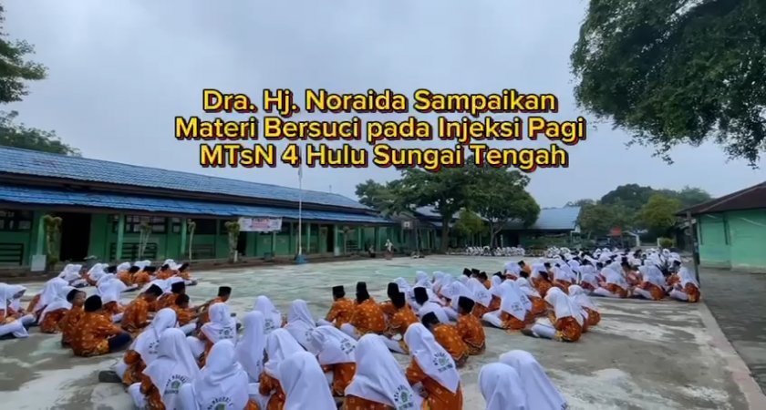 MTsN 4 Hulu Sungai Tengah sukses menggelar kegiatan injeksi pagi pada Rabu, 2 Oktober 2024. Kegiatan yang diikuti oleh seluruh siswa kelas VII, VIII, dan IX ini diisi dengan materi Fiqih seputar bersuci yang disampaikan oleh Dra. Hj. Noraida. Kegiatan ini dilaksanakan di lapangan utama madrasah.