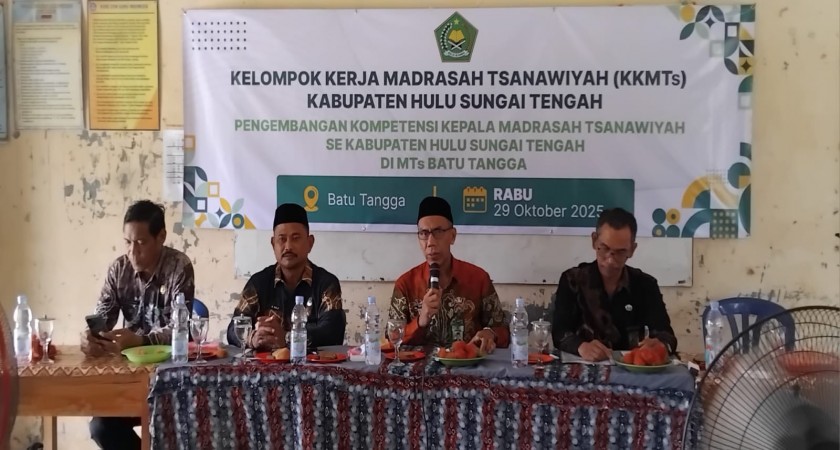 Hulu Sungai Tengah, 30 Oktober 2025 – Plt Kepala Madrasah Tsanawiyah Negeri 4 Hulu Sungai Tengah, Muhammad Isnaini, S.Pd.I, menghadiri kegiatan Kelompok Kerja Madrasah Tsanawiyah (KKMTs) dengan agenda Pengembangan Kompetensi Kepala Madrasah (PKKM) yang dilaksanakan di MTs Batu Tangga, Kamis (30/10/2025).