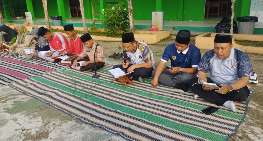 Pembacaan tahlil dipimpin oleh Ahmad Raihan, S.Pd.I, dan berjalan khusyuk serta penuh kekhidmatan. Setelah itu, doa bersama dipimpin langsung oleh Plt Kepala Madrasah, Muhammad Isnaini, S.Pd.I, yang mendoakan keselamatan, ketabahan, serta pemulihan bagi masyarakat yang terdampak bencana.