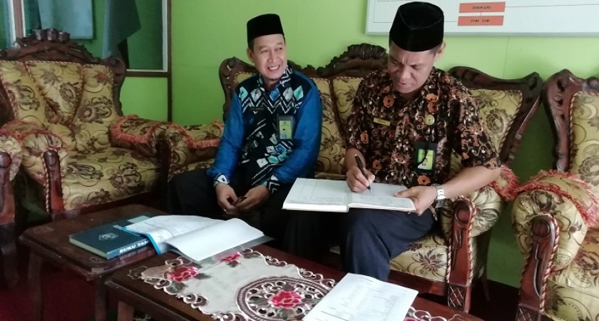 Kepala Madrasah, Drs. H. Darsaili, MM mendampingi Pengawas Madrasah dari Kantor Kementerian Agama Kab. HST Husain, M.Pd yang melakukan kunjungan pasca libur panjang Idul Fitri 1440 H.